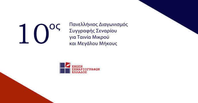 Η Ένωση Σεναριογράφων Ελλάδος προκηρύσσει: τον 10ο Πανελλήνιο Διαγωνισμό Συγγραφής Πρωτότυπου Σεναρίου για Ταινία Μικρού και Μεγάλου Μήκους  Καλούνται οι ενδιαφερόμενοι να υποβάλλουν συμμετοχή μέχρι την 30η Σεπτεμβρίου 2023, ακολουθώντας τα παρακάτω βήματα: