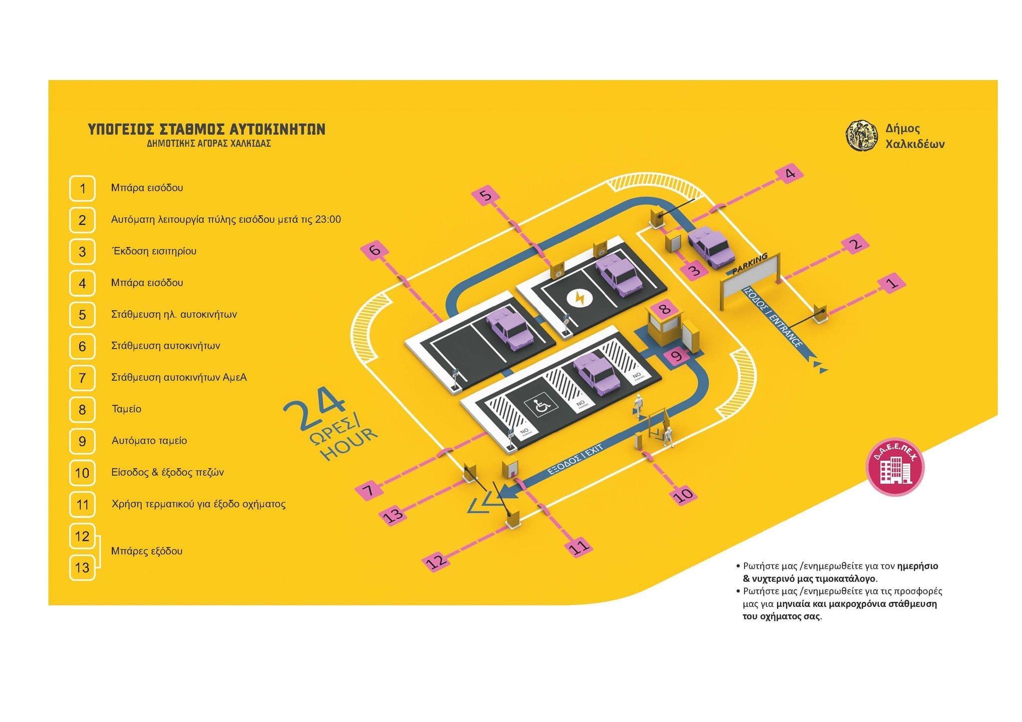 Σε 24ωρη λειτουργία τέθηκε, από τον Δήμο Χαλκιδέων, ο υπόγειος σταθμός αυτοκινήτων στην πλατεία Εμπόρων, στη Δημοτική Αγορά Χαλκίδας, και πλέον πολίτες και επισκέπτες μπορούν να εξυπηρετούνται όλη την ημέρα.