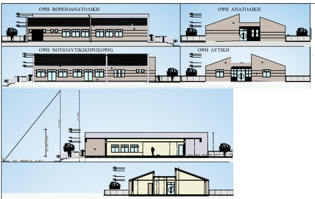 Προβλέπεται να κατασκευαστεί ισόγειο κτίριο επιφάνειας 351,31 τμ. και να διαμορφωθούν ημιυπαίθριοι χώροι επιφάνειας 32,47 τμ. Το ισόγειο θα αποτελείται από: