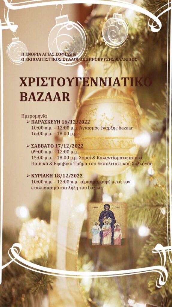 ΧΡΙΣΤΟΥΓΕΝΝΙΑΤΙΚΟ BAZAAR ΣΤΗΝ ΕΝΟΡΙΑ ΑΓ. ΣΟΦΙΑΣ ΞΗΡΟΒΡΥΣΗΣ ΧΑΛΚΙΔΟΣ
