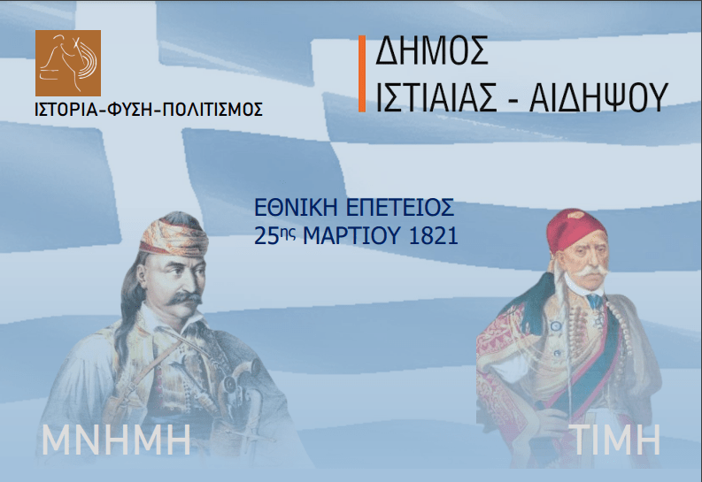 Ο Δήμος Ιστιαίας-Αιδηψού , στο πλαίσιο των εορταστικών εκδηλώσεων για την Εθνική Επέτειο της 25ης Μαρτίου, σας προσκαλεί στη διάλεξη του Ομότιμου Καθηγητή Ποινικού Δικαίου της Νομικής Σχολής του Πανεπιστημίου Θράκης, Άγγελου Ι. Κωνσταντινίδη, με θέμα « Η δίκη των οπλαρχηγών Θ. Κολοκοτρώνη και Δ. Πλαπούτα ». Η διάλεξη θα πραγματοποιηθεί το Σάββατο 25 Μαρτίου και ώρα 19.15 στην Αίθουσα Πολιτισμού « Μελίνα Μερκούρη » στα Λουτρά Αιδηψού.