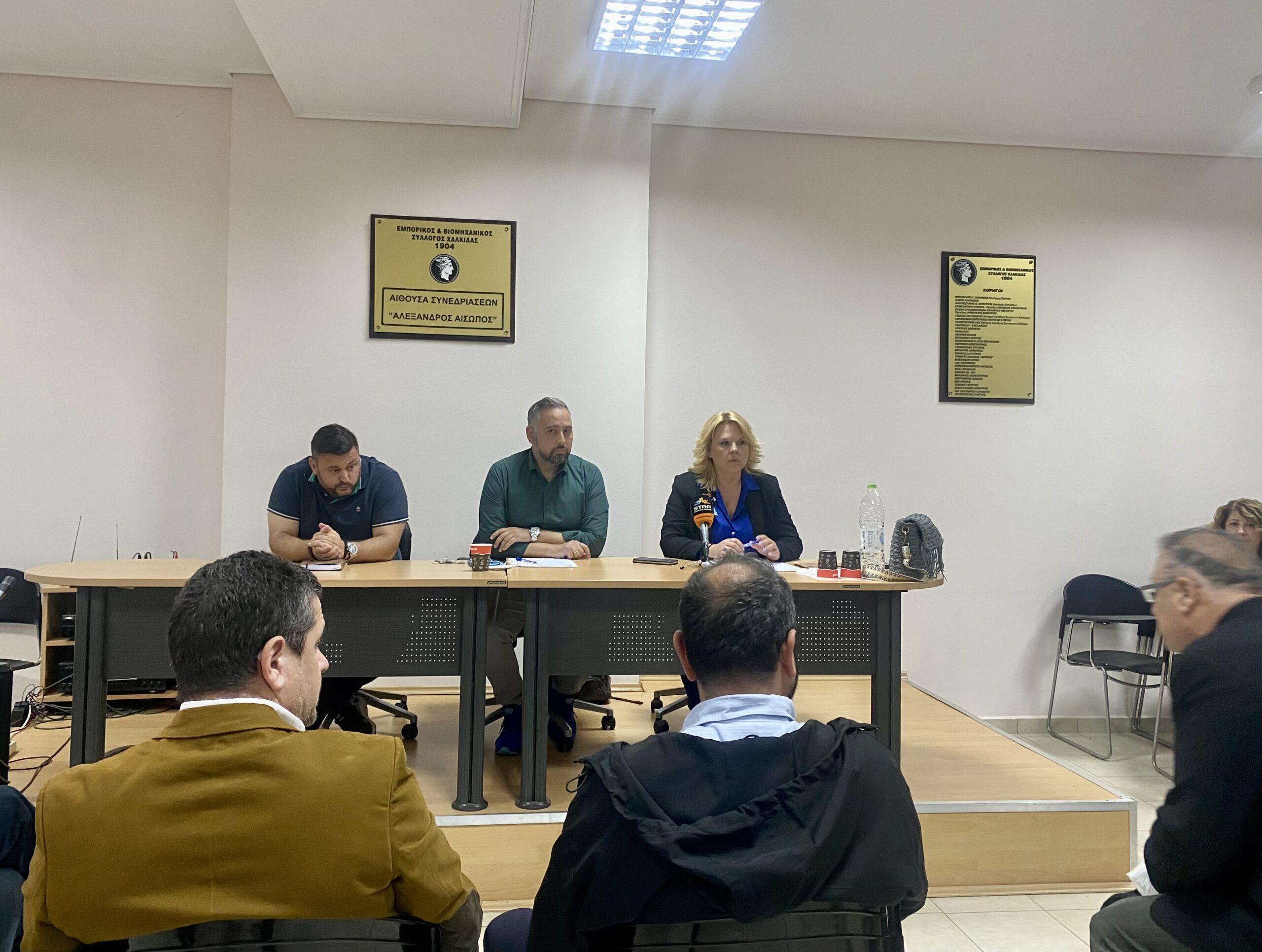 Στη συνάντηση που πραγματοποιήθηκε χθες, Τετάρτη 19 Οκτωβρίου 2022, από την Ομοσπονδία Εμπορίου και Επιχειρηματικότητας Εύβοιας, τον Εμπορικό και Βιομηχανικό Σύλλογο Χαλκίδας και το Σωματείο Κατασταματαρχών Εστίασης Χαλκίδας «Ξένιος Ζευς», με εκπροσώπους της Εταιρείας Φυσικού Αερίου ΔΕΔΑ και θέμα συζήτησης την πορεία των εργασιών επέκτασης του δικτύου φυσικού αερίου στην πόλη της Χαλκίδας,  παρευρέθηκε η Δήμαρχος Χαλκιδέων Έλενα Βάκα και ο Αντιδήμαρχος Έργων του Δήμου Βασίλης Γουρνής.