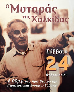 Με αφορμή τη συμπλήρωση ενός χρόνου από τον θάνατο του μεγάλου δάσκαλου και ζωγράφου, Δημήτρη Μυταρά, η Περιφέρεια Στερεάς Ελλάδας, ο Δήμος Χαλκιδέων και το Εργαστήρι Τέχνης Χαλκίδας διοργανώνουν, το Σάββατο 24 Φεβρουαρίου και ώρα 18.00 στο Αμφιθέατρο της Π.Ε. Εύβοιας (Λ. Χαϊνά 93), εκδήλωση με θέμα “Ο Μυταράς της Χαλκίδας”.