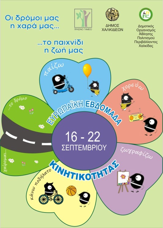 Με την πεποίθηση ότι η Ευρωπαϊκή Εβδομάδα Κινητικότητας είναι μια πολύ καλή αφορμή για να υιοθετηθούν από μικρούς και μεγάλους στάσεις και συμπεριφορές που θα βελτιώσουν την ποιότητα της κυκλοφορίας στην πόλη και θα δημιουργούν μια νέα φιλοσοφία για το περιβάλλον και τη ζωή μας, ο Δήμος Χαλκιδέων καλεί όλους τους πολίτες να συμμετάσχουν ενεργά στις δράσεις της Ευρωπαϊκής Εβδομάδας Κινητικότητας για τις οποίες θα υπάρξει αναλυτική ενημέρωση.