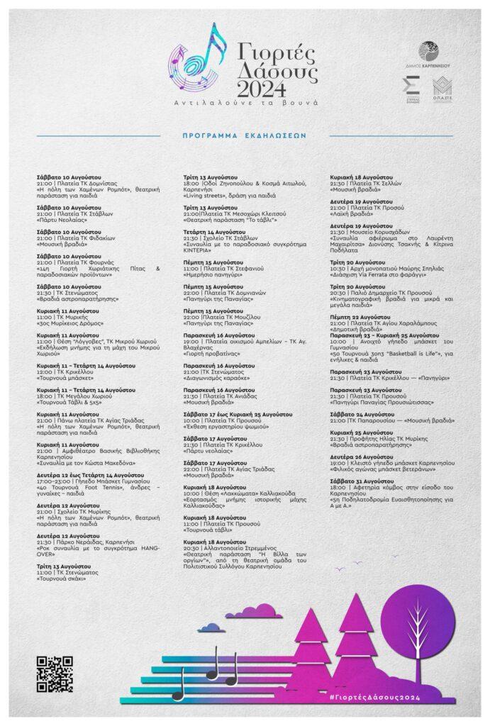 Ακολουθεί το ημερολόγιο για τις εκδηλώσεις που θα λάβουν χώρα σε όλο το Δήμο Καρπενησίου κατά το προσεχές διάστημα και σύντομα θα δημοσιοποιηθεί το Αναλυτικό Πρόγραμμα με τις επιμέρους λεπτομέρειες σχετικά με το περιεχόμενο και τους διοργανωτές τους.