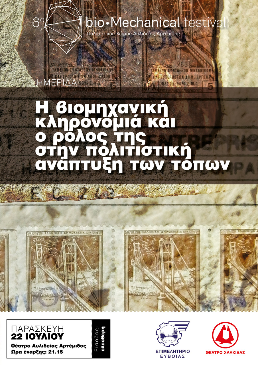 Το Θέατρο Χαλκίδας με την αιγίδα και την στήριξη του Επιμελητηρίου Εύβοιας,  διοργανώνει ημερίδα με θέμα: «Η βιομηχανική κληρονομιά και ο ρόλος της στην πολιτιστική ανάπτυξη των τόπων» η οποία διαρθρώνεται γύρω από την επαναλειτουργία, ανάδειξη και προστασία ανενεργών μεταβιομηχανικών εγκαταστάσεων και τοπίων.