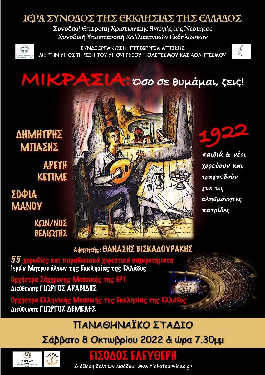 Με πολύ χαρά και ταχύτατους ρυθμούς διοργανώνεται από την Επιτροπή Χριστιανικής αγωγής της Νεότητος της Ιεράς Συνόδου της Εκκλησίας της Ελλάδος η μεγάλη επετειακή εκδήλωση στο Παναθηναϊκό Στάδιο το Σαββάτο 8 -10, όπου όλοι μαζί θα θυμηθούμε τις αλησμόνητες πατρίδες, θα τραγουδήσουμε και θα χορέψουμε!!