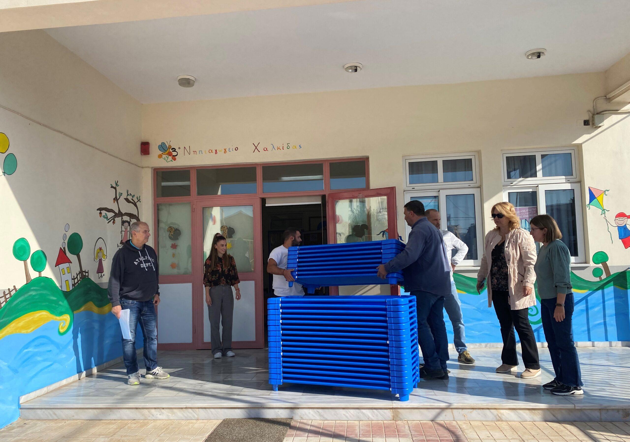 Διανεμήθηκαν σήμερα, Παρασκευή 4 Νοεμβρίου 2022, 68 καινούρια κρεβατάκια σε Νηπιαγωγεία, για την ενίσχυση των ολοήμερων τμημάτων και 200 αντισηπτικά σε όλα τα Νηπιαγωγεία και Δημοτικά σχολεία του Δήμου Χαλκιδέων.