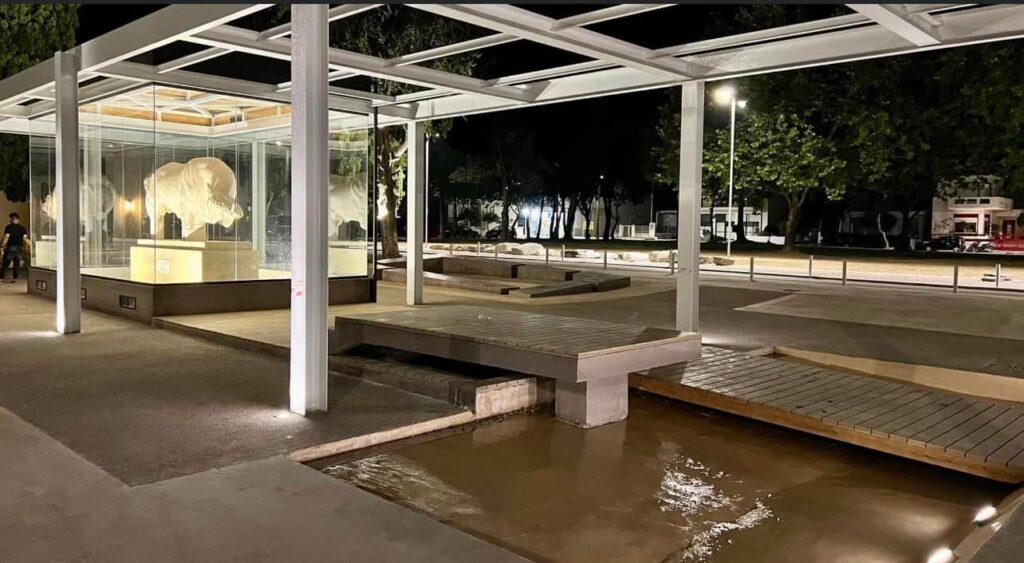 • Καθαίρεση υφιστάμενων κατασκευών (σιντριβάνι, Βρύση, καθιστικά κλπ) καθώς και αποξήλωση των υπαρχόντων τσιμεντοστρώσεων για να γίνει η διαμόρφωση του περιβάλλοντα χώρου