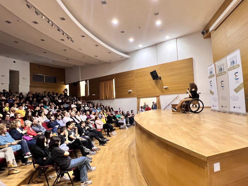 Η stand up comedian Κατερίνα Βρανά περιέγραψε στους μαθητές με έναν μοναδικό και διδακτικό τρόπο τι ακριβώς της συνέβη στη Μαλαισία. Έδωσε έμφαση στον τρόπο με τον οποίο η οικογένεια της διαχειρίστηκε την αναπηρία της και στη δύναμή της για ζωή. Ακολούθως, απάντησε σε ερωτήσεις των μαθητών.