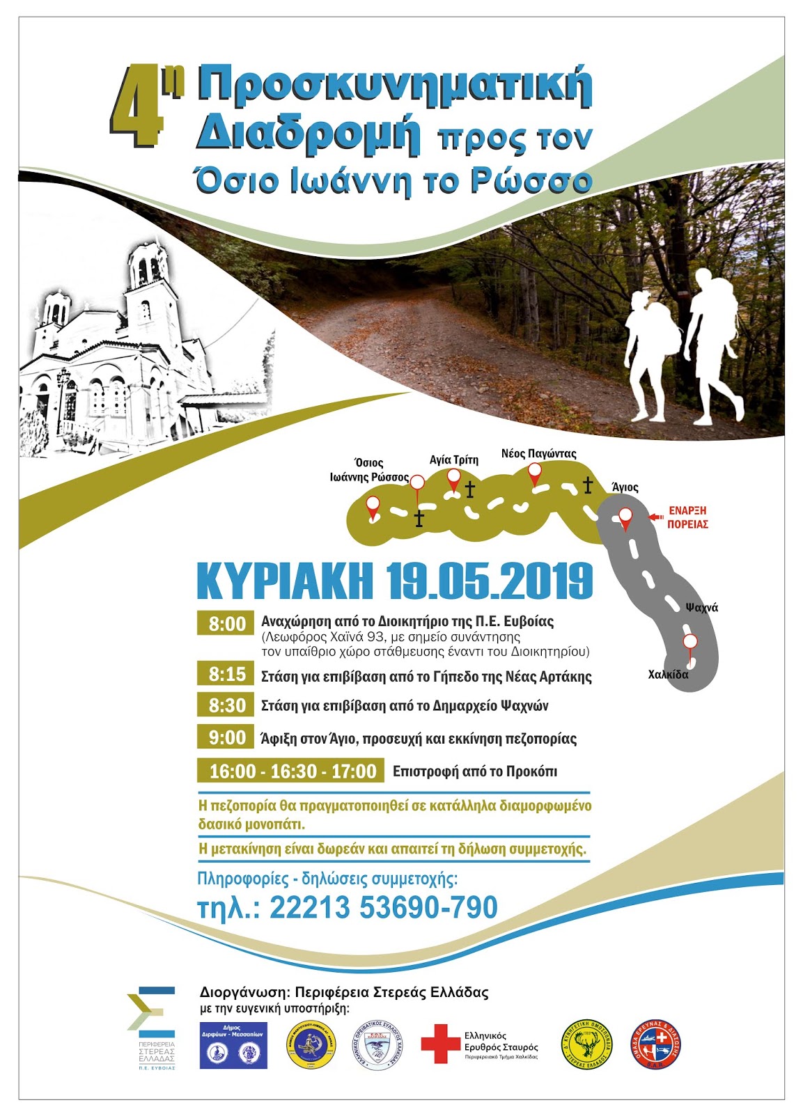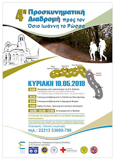 Το πρόγραμμα της 4ης Προσκυνηματικής διαδρομής προς τον Όσιο Ιωάννη το Ρώσσο, που θα πραγματοποιηθεί την Κυριακή 19 Μαΐου, έχει ως εξής: