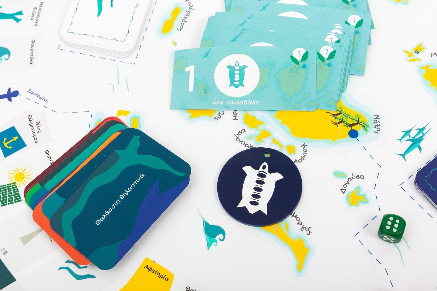 Το ταμπλό  του παιχνιδιού αναπαριστά το φυσικό περιβάλλον και τις προοπτικές βιώσιμης ανάπτυξης. 120 χαρτονομίσματα του ενός «κυκλαδόνιου» μοιράζονται στην αρχή από τον τραπεζίτη στους παίκτες.  Ανάλογα με τη ζαριά ο παίκτης μπορεί να πέσει  πάνω στις 16 κάρτες «μπουνάτσα» όπου κερδίζει κυκλαδόνια ή στις 16 κάρτες «φουρτούνα» όπου πληρώνει κυκλαδόνια ενώ με τις 22 «κάρτες τίτλων προστασίας» μπορεί να αγοράσει «προστασία» στις κατηγορίες: Θαλάσσια θηλαστικά, Ψαρικά, Ανανεώσιμες πηγές ενέργειας, Μεσογειακή βλάστηση, Τοποθεσίες-αρχαιολογικοί χώροι, Οικοτουριστικές διαδρομές κ.ά